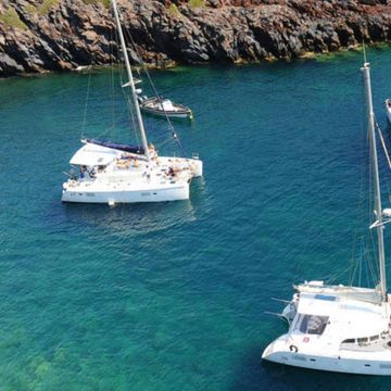 Navegar pela lagoa escondida nas cavernas Kleftiko